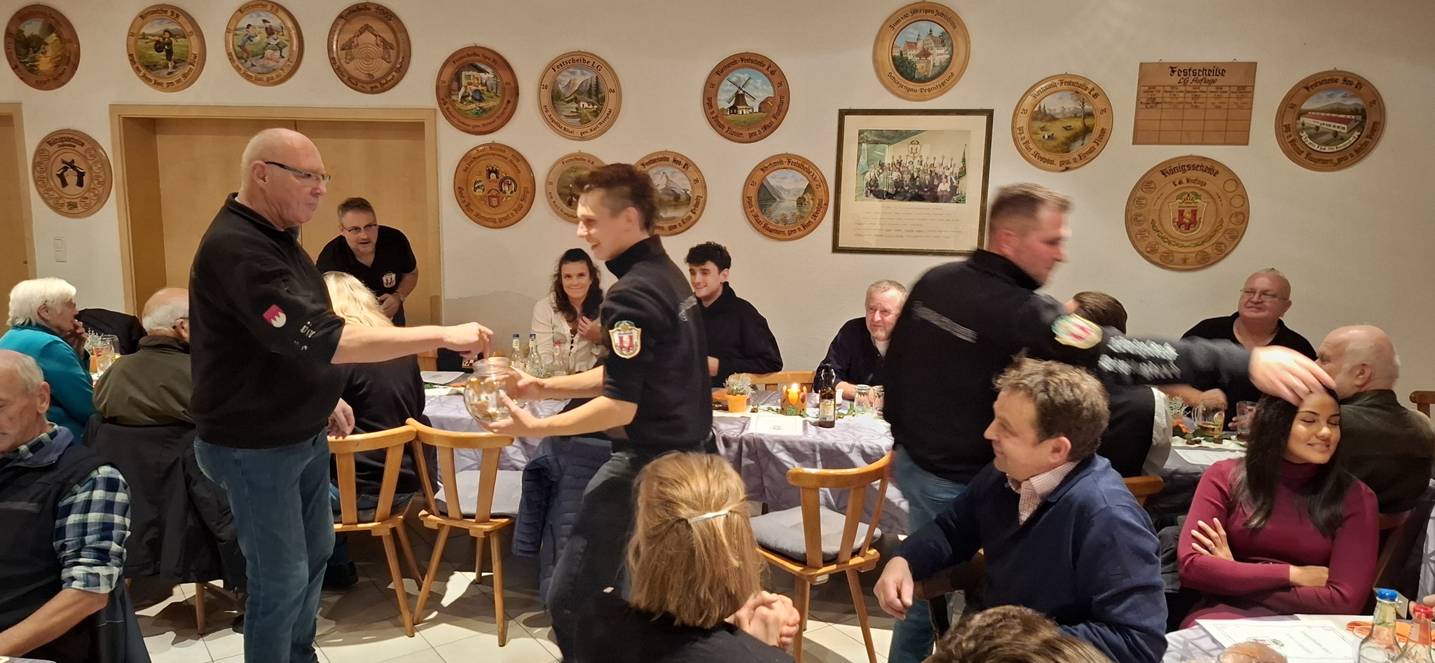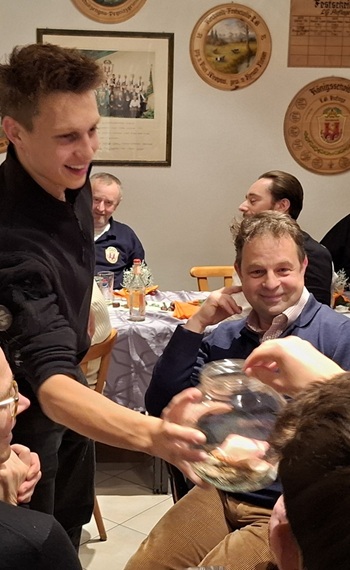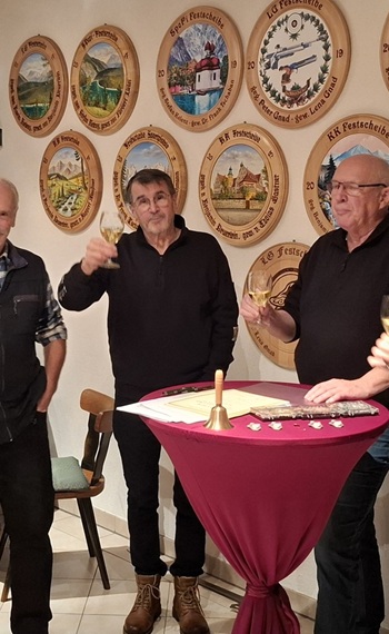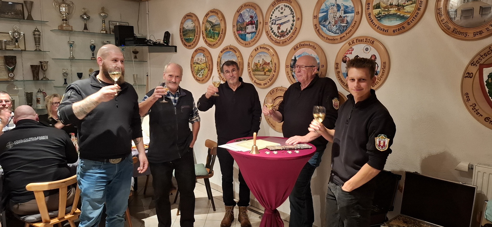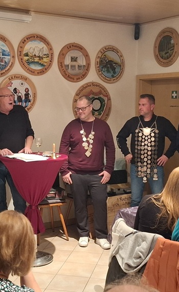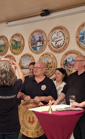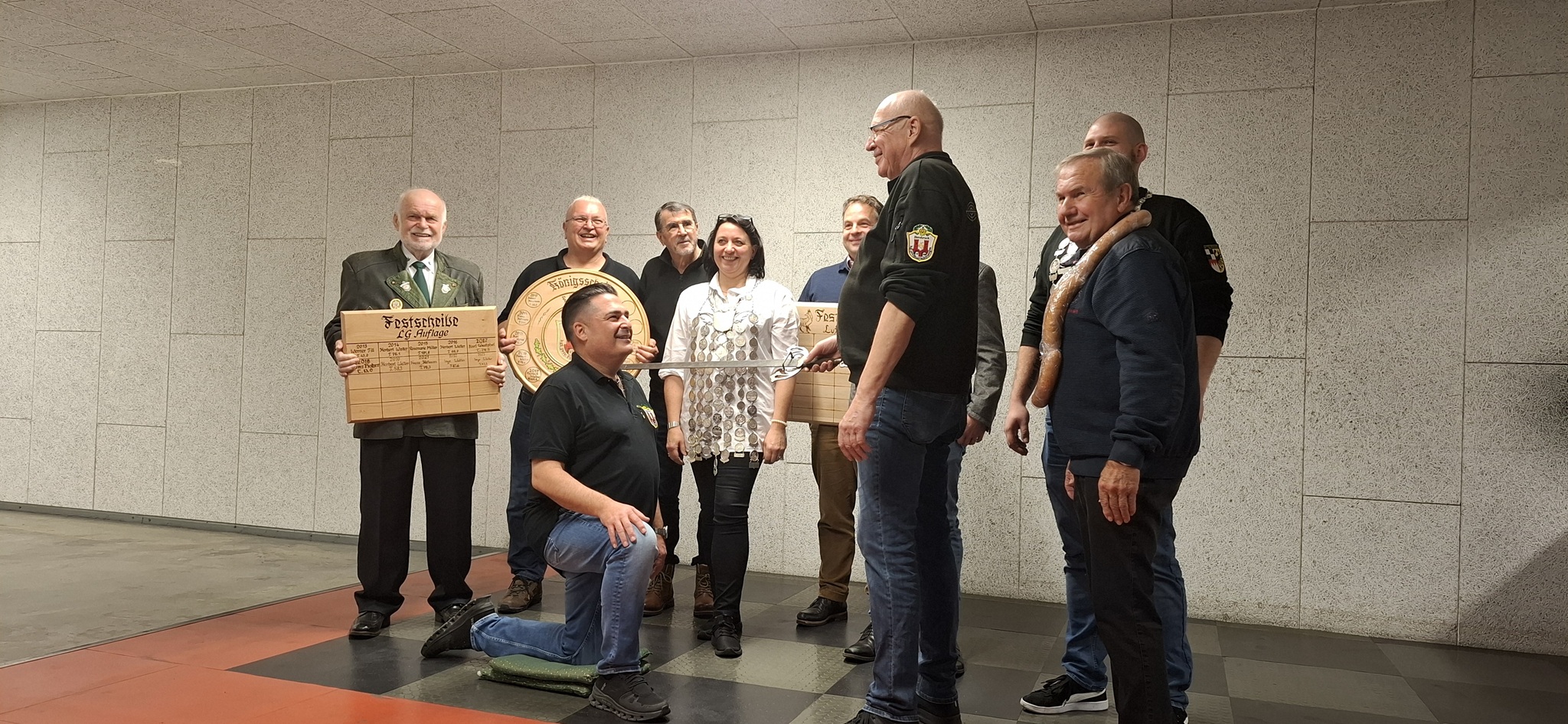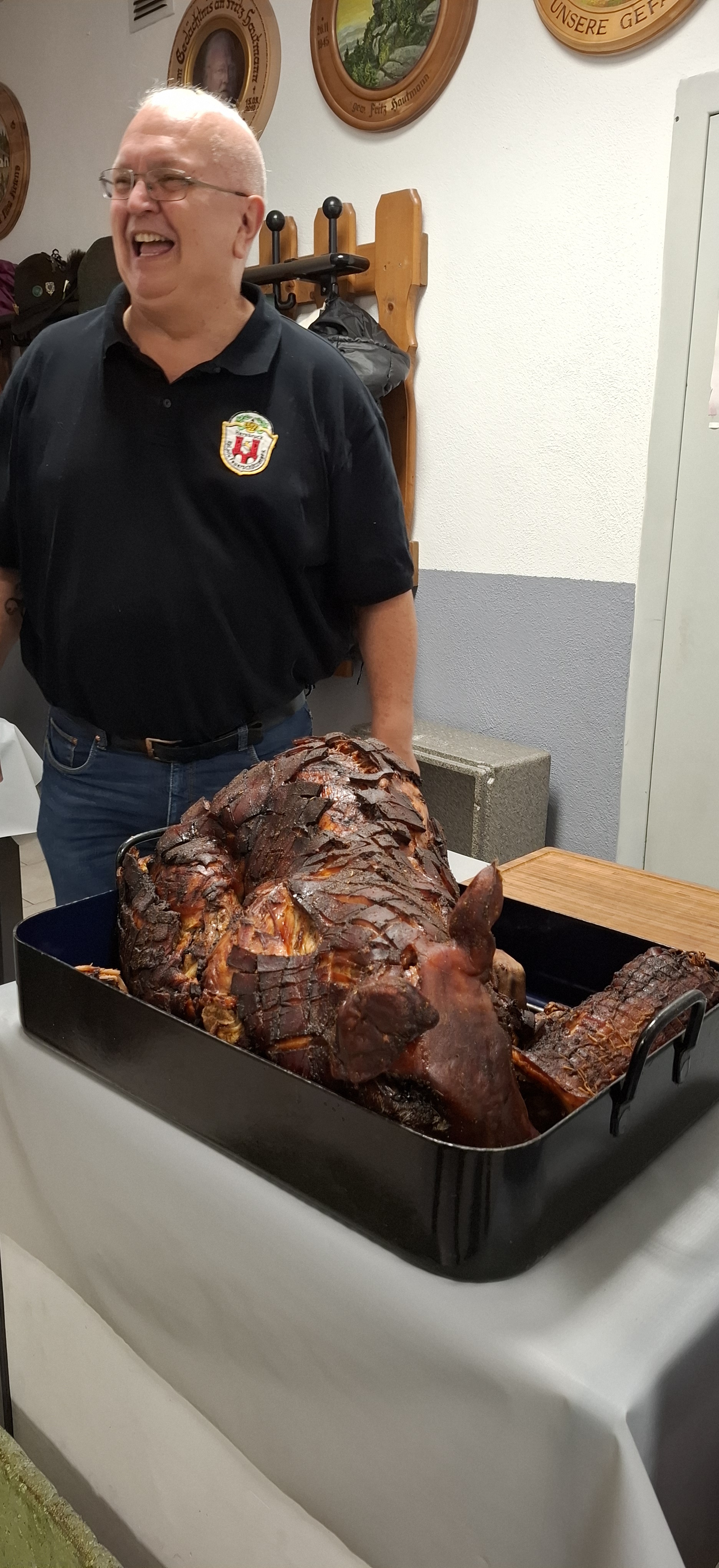 Am 25.10.025 feierten wir unsere diesjährige Königsfeier mit Proklamation unserer neuen „Regenten“. Die Veranstaltung war sehr gut besucht. Unser Schützenstüberl war bis auf den letzten Platz voll besetzt. Auch in diesem Jahr ließen wir uns ein ganz hervorragend zubereitetes Spanferkel schmecken. Neu war in diesem Jahr, dass wir die Gelegenheit dieses feierlichen Rahmens dafür nutzten, um auch unsere erfolgreichen Teilnehmer an den deutschen Meisterschaften, (Julian Brandmeier und Hermann "Pulver Joe" Mörtel jeweils zum Meistertitel, Rudi Pickel zu Platz zwei, sowie Maximilian Zaus zu einem dritten Platz), gebührend zu ehren. Ein kurioses Novum ergab sich beim diesjährigen Königsschießen, da unser Schützenbruder Michael Krammer es tatsächlich darauf anlegte, alle drei zu vergebenden Stadtwurstringe zu gewinnen. Um nicht in ein „Stadtwurst-Koma“ zu fallen, spendete er zwei Stadtwurstringe. Dafür vielen Dank. Einen der beiden Spende-Stadtwurst-Ringe vergaben wir für den am weitesten vom Ziel entfernten, beim Königsschießen abgegebenen Schuss an Jürgen Mühlbauer, der sich trotzdem über den Preis freute. Den dritten Ring haben wir im Rahmen einer recht kurzweiligen amerikanischen Auktion versteigert. Der Zuschlag ging an Jan Schels. An dieser Stelle gratulieren wir dem erfolgreichen Bieter und danken allen nicht erfolgreichen Bietern.