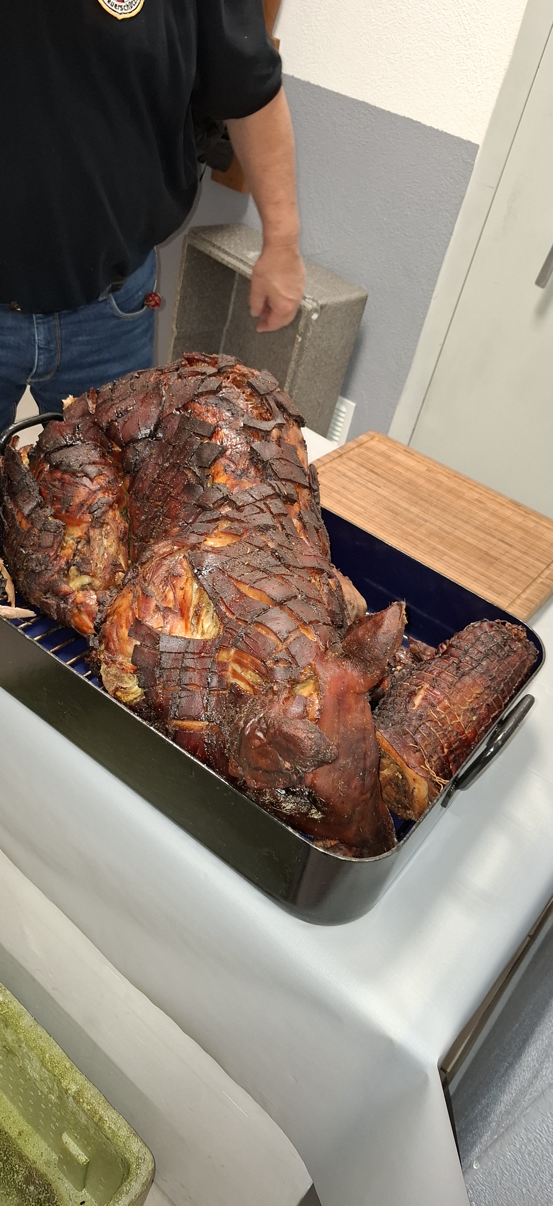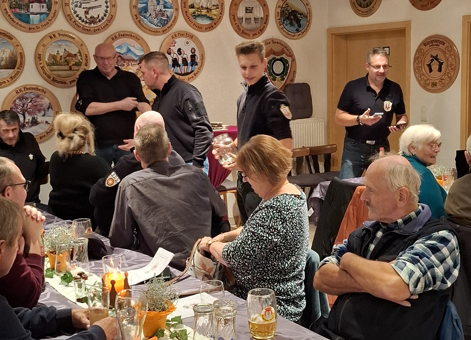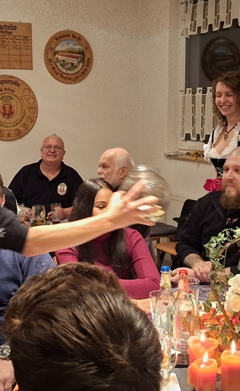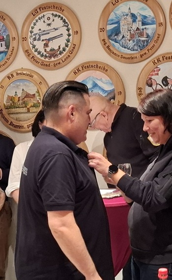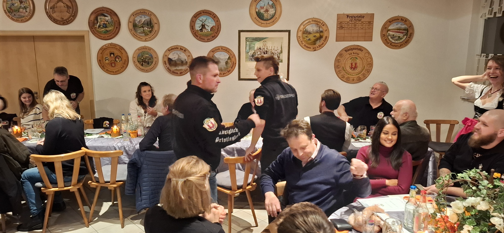 Am 25.10.025 feierten wir unsere diesjährige Königsfeier mit Proklamation unserer neuen „Regenten“. Die Veranstaltung war sehr gut besucht. Unser Schützenstüberl war bis auf den letzten Platz voll besetzt. Auch in diesem Jahr ließen wir uns ein ganz hervorragend zubereitetes Spanferkel schmecken. Neu war in diesem Jahr, dass wir die Gelegenheit dieses feierlichen Rahmens dafür nutzten, um auch unsere erfolgreichen Teilnehmer an den deutschen Meisterschaften, (Julian Brandmeier und Hermann "Pulver Joe" Mörtel jeweils zum Meistertitel, Rudi Pickel zu Platz zwei, sowie Maximilian Zaus zu einem dritten Platz), gebührend zu ehren. Ein kurioses Novum ergab sich beim diesjährigen Königsschießen, da unser Schützenbruder Michael Krammer es tatsächlich darauf anlegte, alle drei zu vergebenden Stadtwurstringe zu gewinnen. Um nicht in ein „Stadtwurst-Koma“ zu fallen, spendete er zwei Stadtwurstringe. Dafür vielen Dank. Einen der beiden Spende-Stadtwurst-Ringe vergaben wir für den am weitesten vom Ziel entfernten, beim Königsschießen abgegebenen Schuss an Jürgen Mühlbauer, der sich trotzdem über den Preis freute. Den dritten Ring haben wir im Rahmen einer recht kurzweiligen amerikanischen Auktion versteigert. Der Zuschlag ging an Jan Schels. An dieser Stelle gratulieren wir dem erfolgreichen Bieter und danken allen nicht erfolgreichen Bietern.
